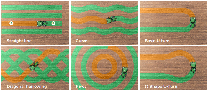 Работа в поле — это далеко не просто движение по прямой. От криволинейных участков и диагонального боронования до разворотных операций и автоматических разворотов на поворотной полосе — алгоритм планирования маршрута должен учитывать множество сценариев. Он объединяет данные о границах поля, агротехнические требования (например, ширину междурядий) и данные о местоположении в реальном времени, чтобы проложить максимально эффективный маршрут, при этом непрерывно рассчитывая управляющие команды на основе динамической модели транспортного средства. Это обеспечивает более плавную и точную работу автопилота.